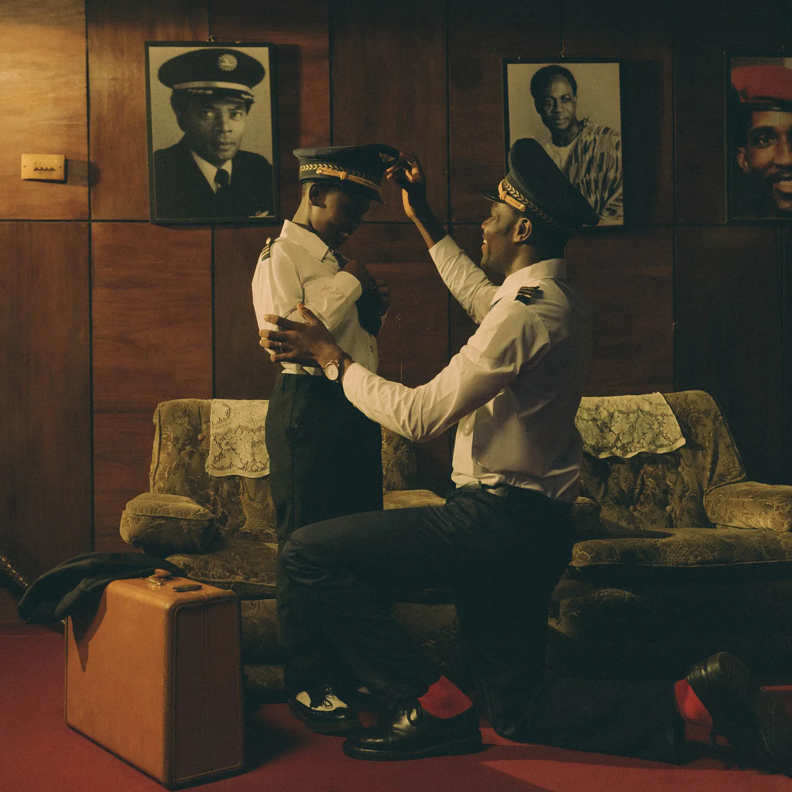 Based in Accra, Carlos Idun-Tawiah works at the intersection of archival photography and staged image-making, constructing narratives that reframe the everyday as a site of quiet significance. His practice draws on family histories, found images, and collective memory to examine how Black life is remembered, imagined, and re-presented. Moving between past and present, his photographs resist sentimentality, instead offering measured reflections on intimacy, belief, and generational inheritance. Idun-Tawiah has received sustained international attention, appearing among the 95 contributors in MANJU Journal’s debut anthology, ''VOICES – Ghana’s Artists in Their Own Words'' published in 2023, with his work featured in The New York Times, Le Figaro, Dazed, Harper’s Bazaar, AD, and El País. His latest series extends this inquiry, refining a visual language that is deliberate, restrained, and rooted in historical consciousness. In Hero, Father, Friend, Idun-Tawiah constructs an imagined biopic of his father, drawing on moments he wished he had lived to preserve his memory. The series foregrounds photography’s capacity to stand in for absence, functioning as a form of remembrance in which images become talismans−holding, protecting, and returning us to moments shaped as much by longing as by experience.