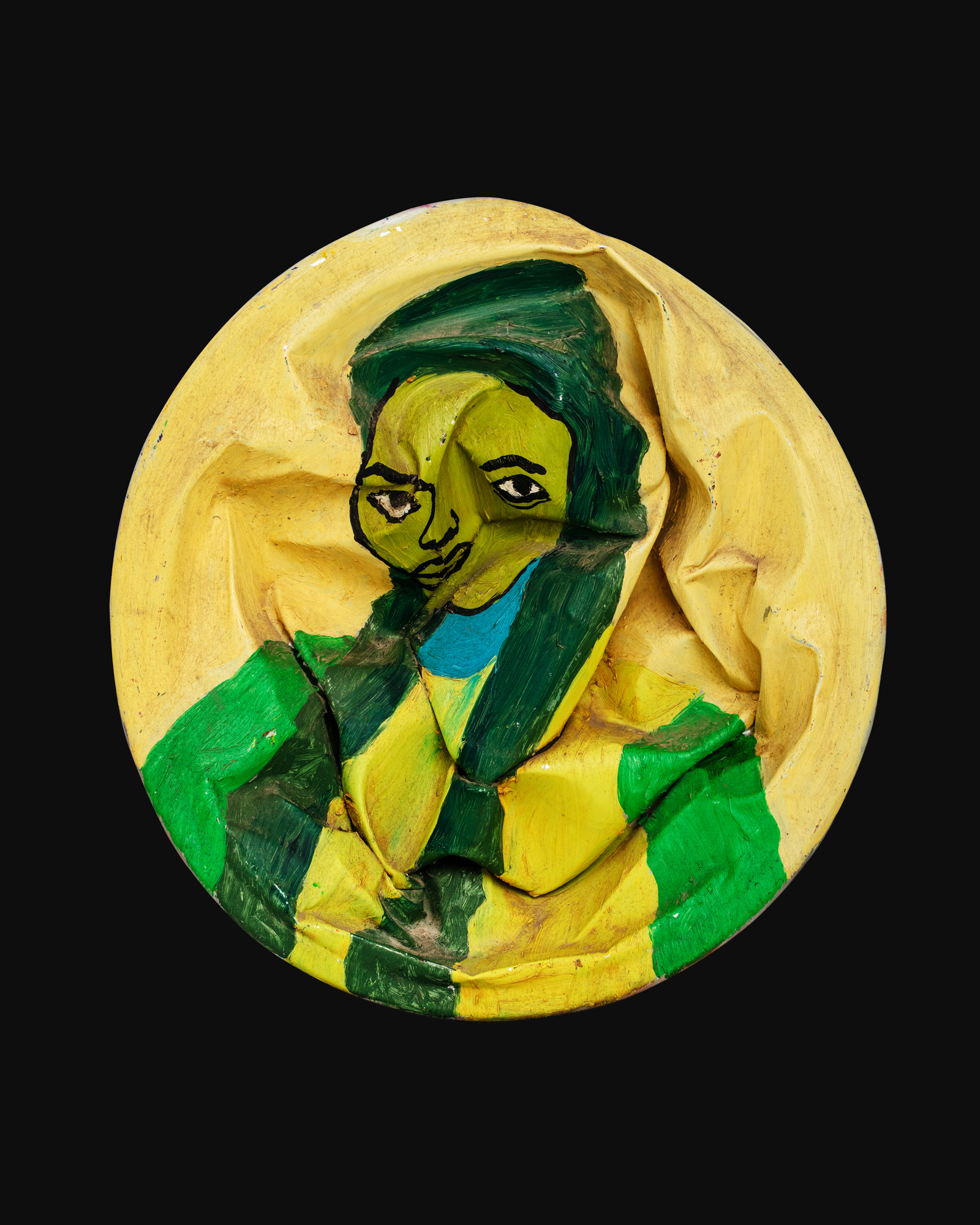 The exhibition intertwines intimate personal history with vibrant social commentary across diverse multi-media works. Drawing from his childhood as an orphan in Sodom and Gomorrah, an informal settlement in Accra, Moses Adjei spotlights the lives of the Kayayei - women porters - whose strength and resilience challenge prevailing socio-economic marginalization. Central to this exhibition is a powerful act of recognition and reclamation. Reminiscent of the pioneer art theorist Joseph Beuy's revolutionary concept of social sculpture, where art transcends objects and embraces life as a creative process shaped by all, Adjei's work operates as a complex system of recognition, resistance, and restoration centered on Ghana's kayayei women and marginalized communities. Adjei's practice echoes this ethos this ethos through materials and methods that weave personal and communal histories into public consciousness. His signature series, Apawa Coins, transforms battered pans carried by kayayei- the iconic symbols of invisible labor- into monumental sculptural coins that bear hammered portraits of these women.