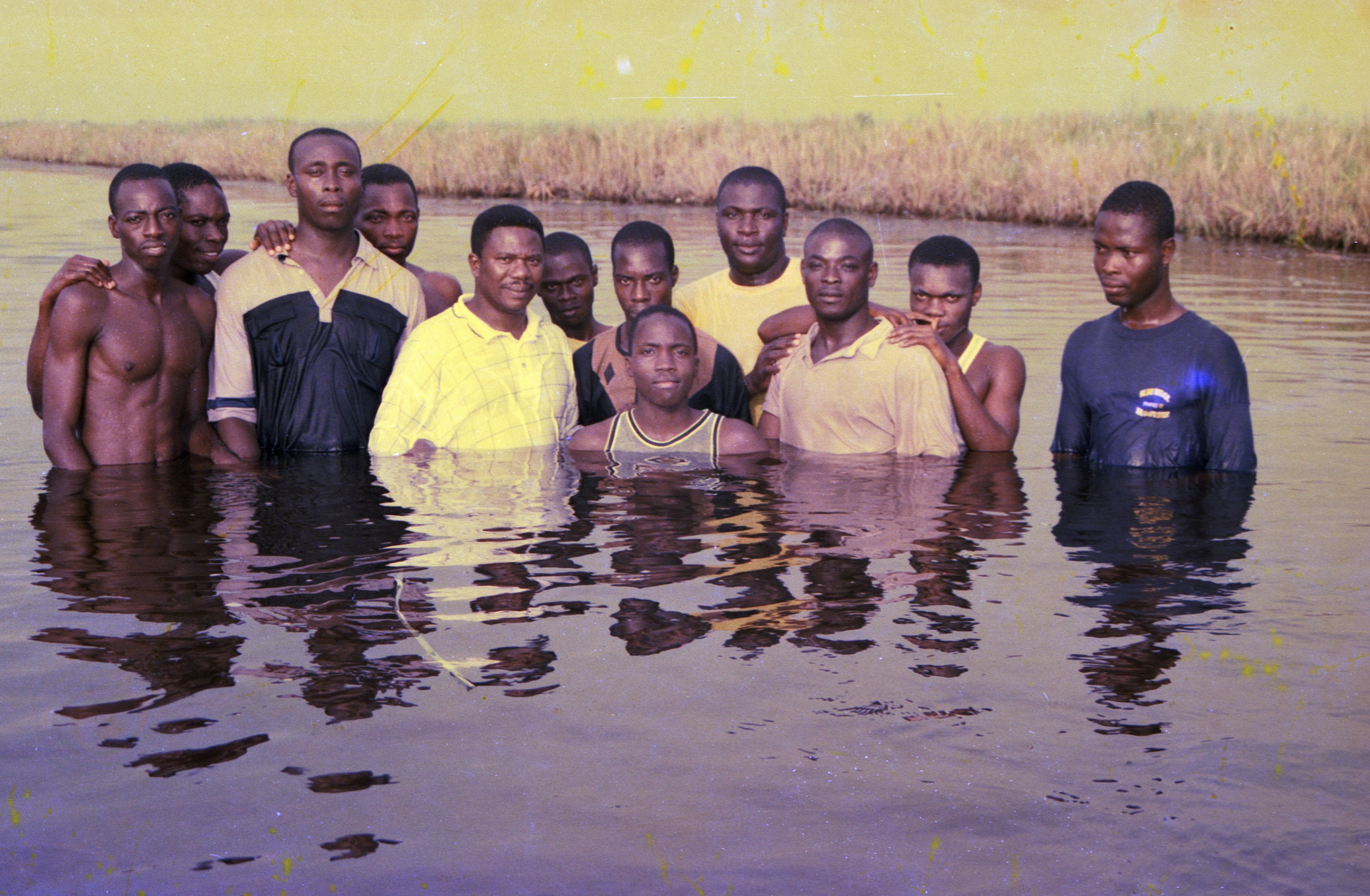 - 'men after baptism' (circa 1990), Perseverance Photo Studio, Anloga. Courtesy of the photographer and saman archive