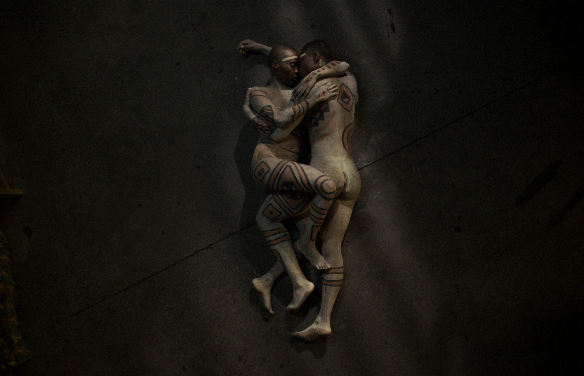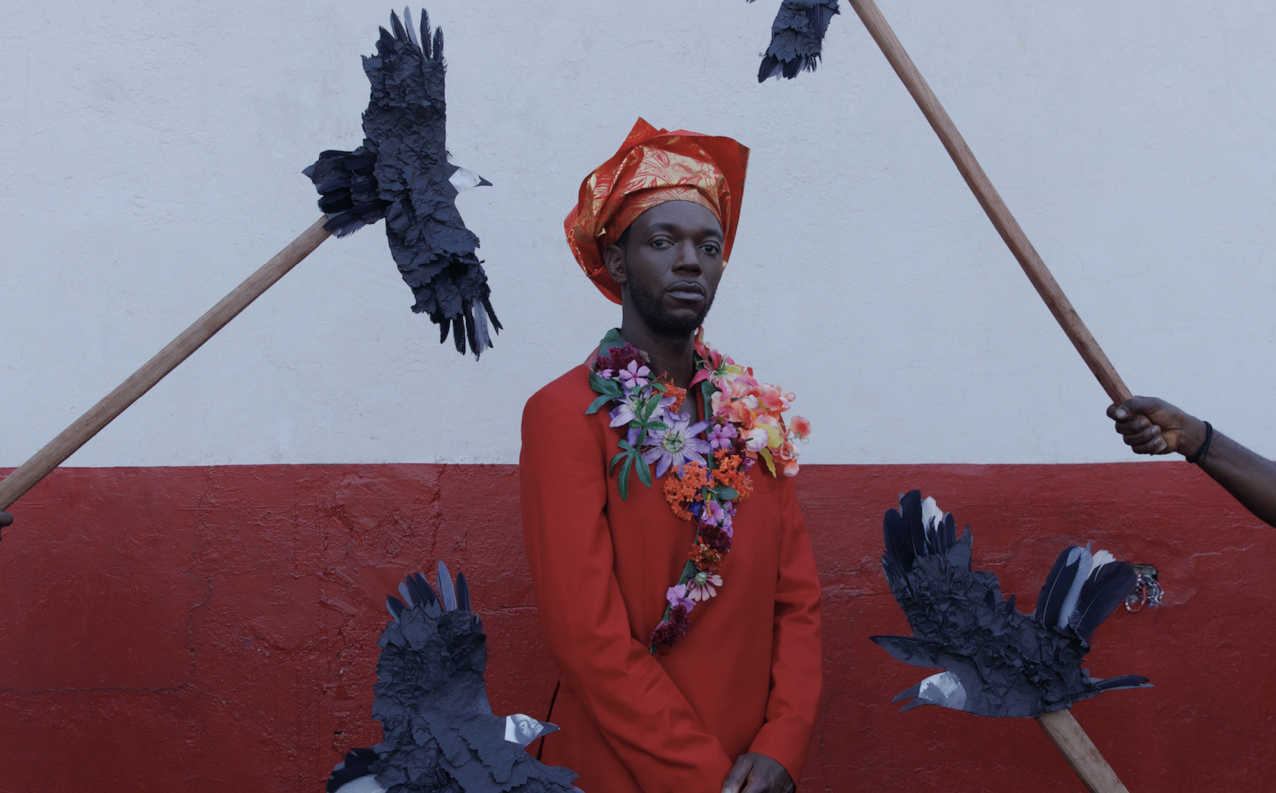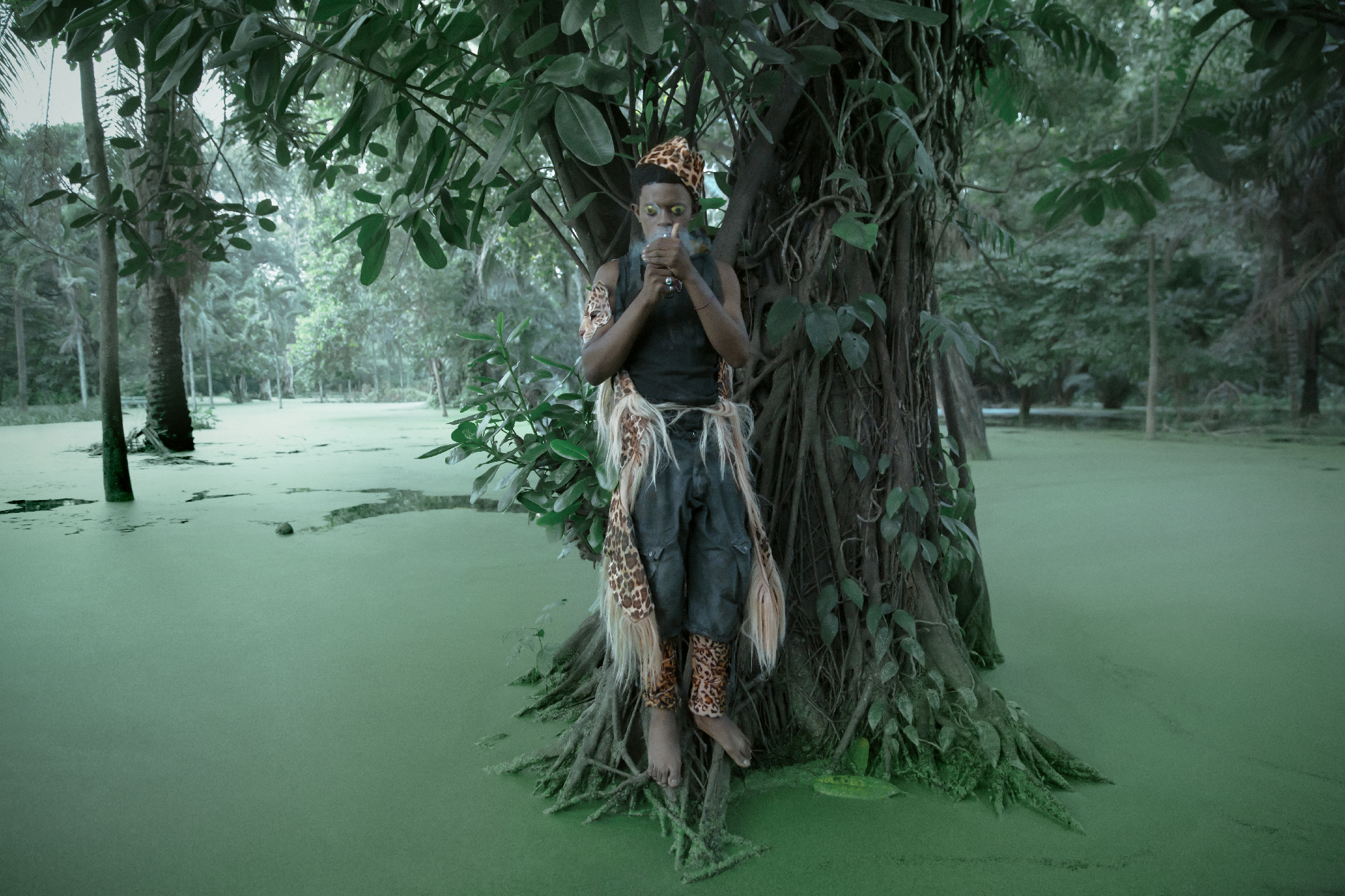 Baloji’s practice is defined by an unflinching ability to choreograph disparate cultural codes into a singular visual language. His work resists classification, moving fluidly between references that span geographies and belief systems: ceremonial dress echoing the lineage of New Orleans Mardi Gras Indians, fragments of European folklore, Mobutist symbolism rendered in leopard skin, and improvised monuments such as a glowing tree assembled from phone-charging cables in a country where electricity remains unstable. These elements are not deployed as quotation but as material−reassembled into a dense, hallucinatory logic that forms Baloji’s unmistakable aesthetic grammar. Across the film, the four central figures are bound by a shared struggle against inherited roles and imposed identities. Their attempts at release unfold within a series of charged, phantasmagorical tableaux that sharpen the emotional stakes of the narrative. Each character appears suspended between expectation and impossibility, haunted by the absence of resolution and the weight of unrealized selves. Baloji mirrors this tension in his filmmaking, constructing a space where meaning remains deliberately open−inviting the viewer to confront their own uncertainties within the film’s shifting moral and symbolic terrain.